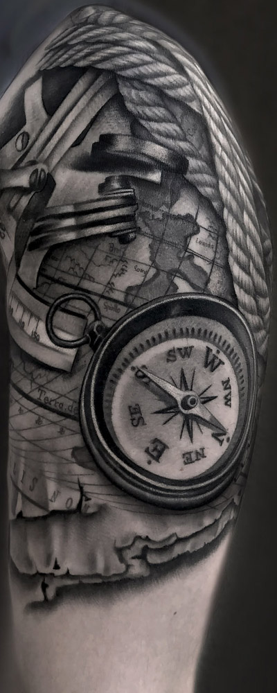 Vasil ist ein Meister des Realismus, spezialisiert auf Schwarz-Weiß-Tattoos und Portraits. Ideal für alle, die ein realistisches Tattoo wollen.