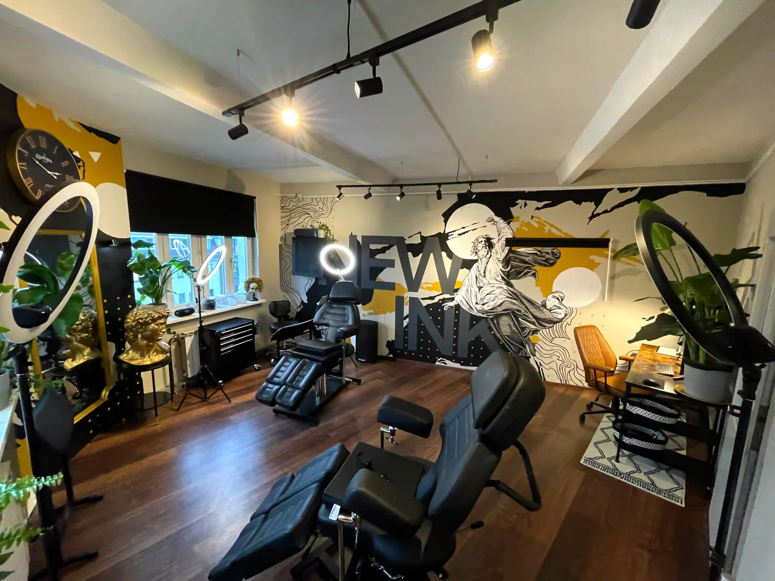 Bei NextInk dreht sich alles um deine Idee. Unser Studio ist während deines Termins komplett für dich reserviert. Wir haben zwei separate Räume: einen gemütlichen Besprechungsraum, in dem wir gemeinsam dein Tattoo-Design planen, und einen professionellen Tätowierraum, in dem dein Kunstwerk entsteht. Während des Tätowierens kannst du dich mit Musik, Streaming oder einem Gespräch entspannen. Dein Tattoo-Erlebnis wird so einzigartig wie dein Design.